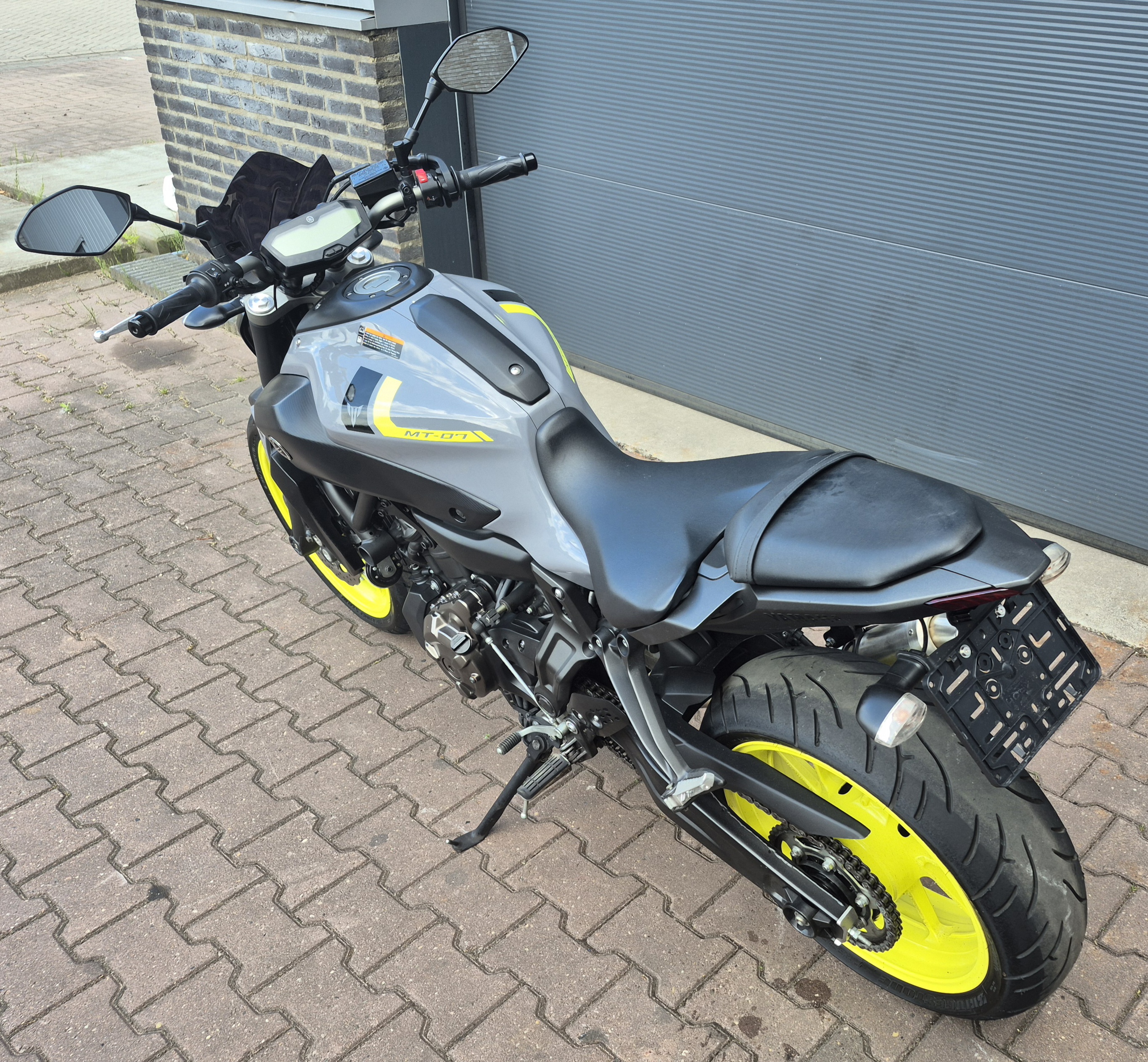 Weer een hele dikke MT07. Prachtig werkelijk waar, als nieuw met weinig gebruik sporen. Deze fiets is gemaakt voor zowel het sportieve rijden als het lekker touren. Ze staan er om bekent dat ze geweldig sturen en met dit vermogen kun je ook nog heerlijk gassen. De gele accenten zorgen voor een super stoere uitstraling. Kortom hele mooie fiets die nog lang mee kan.